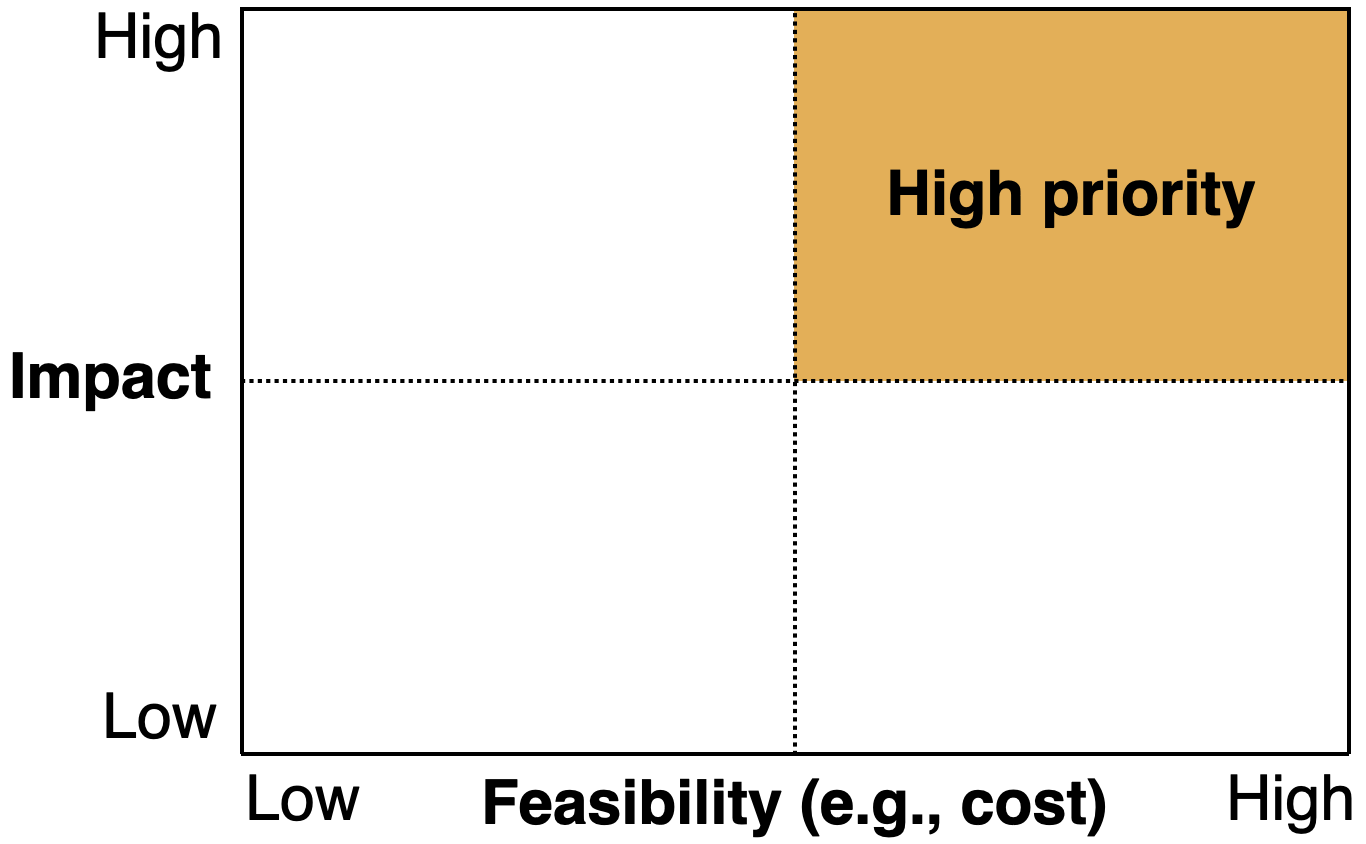 Just like any other project prioritization, you want to look for use cases that have high impact and low cost: