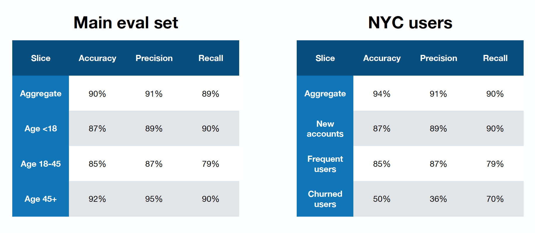Not build a granular enough understanding of the performance of the model before deploying it.
