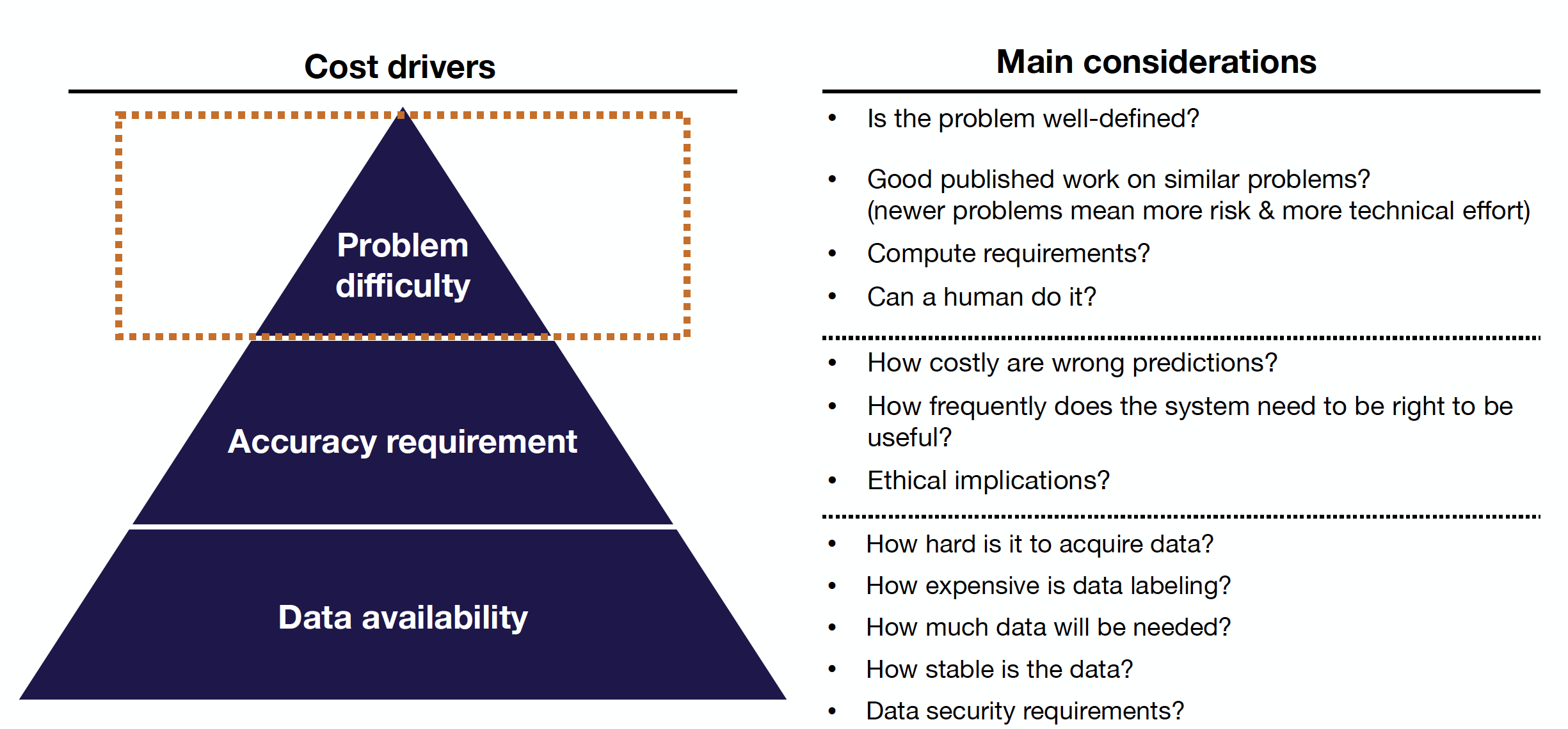 In the book “Prediction Machines,” the authors (Ajay Agrawal, Joshua Gans, and Avi Goldfarb) come up with an excellent mental model on the economics of Artificial Intelligence: As AI reduces the cost of prediction and prediction is central for decision making, cheap predictions would be universal for problems across business domains. Therefore, you should look for projects where cheap predictions will have a huge business impact.